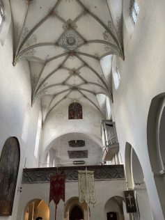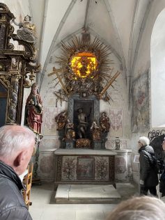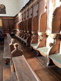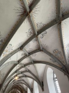 In der Nacht hatte es gefroren und geschneit. Daher waren die 30 Frauen der Frauengruppe des SAV froh, dass man sich einem Busunternehmen angeschlossen hatte, der das gleiche Angebot im Programm hatte wie der Albverein. Für etwas Verwirrung sorgte die Sitzplatznummerierung, die so vorab nicht abgesprochen war. Aber später konnte das Problem wohl untereinander geregelt werden. Das Kloster in Heiligkreuztal war der erste Anlaufpunkt. Leider war die Klosterkirche gerade eingerüstet wegen Renovierungsarbeiten, aber die 1,5 stündige Führung mit Einblick in die Klosterkirche, die Nonnenempore, den Klostergarten, den Kreuzgang und den Kapitelsaal war umso interessanter.
